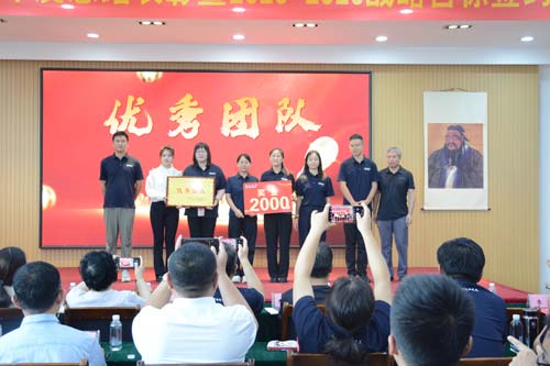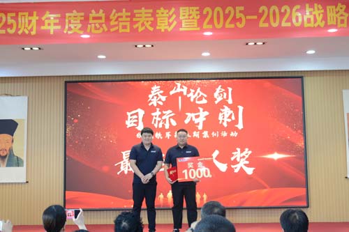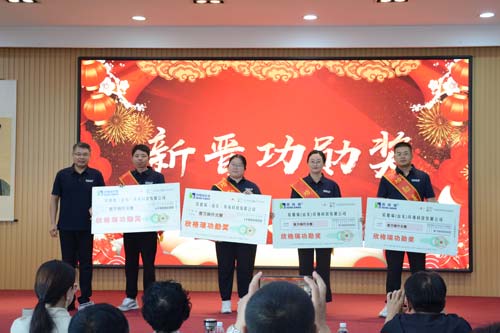 在表彰環(huán)節(jié),公司黨支部書記王留存首先宣讀了表彰決定,對(duì)過去一財(cái)年中涌現(xiàn)出的優(yōu)秀個(gè)人與團(tuán)隊(duì)進(jìn)行嘉獎(jiǎng)。隨后,獲獎(jiǎng)?wù)咭来蔚桥_(tái),接受榮譽(yù)與嘉獎(jiǎng)。大會(huì)分別向優(yōu)秀員工、優(yōu)秀管理干部、優(yōu)秀團(tuán)隊(duì)、年度改善優(yōu)秀個(gè)人、年度改善優(yōu)秀部門、企業(yè)文化落地優(yōu)勝團(tuán)隊(duì)和個(gè)人頒發(fā)了禮品、獎(jiǎng)金及榮譽(yù)證書。大會(huì)同時(shí)表彰化學(xué)品事業(yè)部“泰山論劍·目標(biāo)沖刺”集訓(xùn)活動(dòng)中表現(xiàn)優(yōu)異的團(tuán)隊(duì)與個(gè)人,授予最強(qiáng)戰(zhàn)隊(duì)獎(jiǎng)、戰(zhàn)隊(duì)貢獻(xiàn)獎(jiǎng)和最佳新人獎(jiǎng)。此外,大會(huì)隆重揭曉了2025-2026財(cái)年18位新晉功勛獎(jiǎng)名單,并頒發(fā)功勛獎(jiǎng)牌,本財(cái)年,享受孝老金的員工將達(dá)127人。