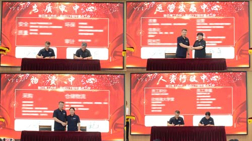 在全體與會(huì)人員的見證下,大會(huì)舉行了莊嚴(yán)的新財(cái)年目標(biāo)責(zé)任書簽訂儀式。田總代表公司分別與各事業(yè)部、分公司及各中心負(fù)責(zé)人鄭重簽署目標(biāo)責(zé)任書。一紙承諾,千鈞重任,標(biāo)志著新財(cái)年沖鋒的號(hào)角正式吹響,目標(biāo)清晰錨定,責(zé)任層層壓實(shí)。